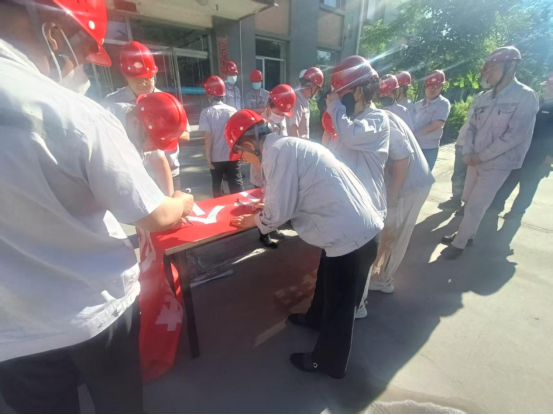 儀式現場,全體員工進行了莊嚴的安全宣誓。大家整齊站立,鄭重承諾嚴格遵守安全規章制度,認真履行安全職責,時刻注意安全,做到不傷害自己、不傷害他人、不被他人傷害。響亮的宣誓聲回蕩在園區上空,表達了全體員工對安全生產的堅定決心。宣誓結束后,員工們紛紛在安全月主題橫幅上簽名,以實際行動表明自己對安全生產的支持和承諾。